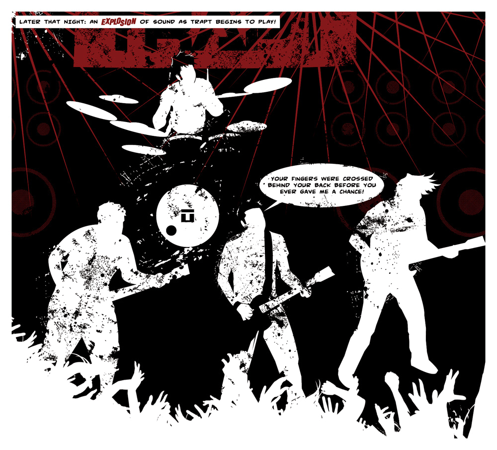 For this LIVE! album I took live photos of the band and illustrated them in a Frank Miller inspired black, white and red comic book style to hopefully give a unique spin on packaging featuring imagery of the band performing live.